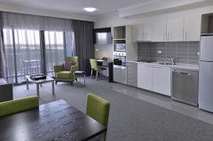 Newest accommodation in Darwin. Offering free WIFI, ample free parking and 24 hour reception. 200 accommodation rooms ranging from brand new King rooms to fully self contained 2 bedroom suites and 1 bedroom apartments. Refinding hospitality in the Top End, the restaurant and bar is the newest venue in Darwin. Open plan meets open air for a relaxed atmosphere, with our contempory facililities make eating and drinking the highlight of your stay. Enjoy complimentary entry to our well equipped gym, then cool off with a dip in our sparkling outdoor pool. For groups and conferences there are 7 purpose built spaces with state of the art AV technology including video conferencing, and a maximum capacity of 600 for a cocktail style event. All rooms boast natural light.